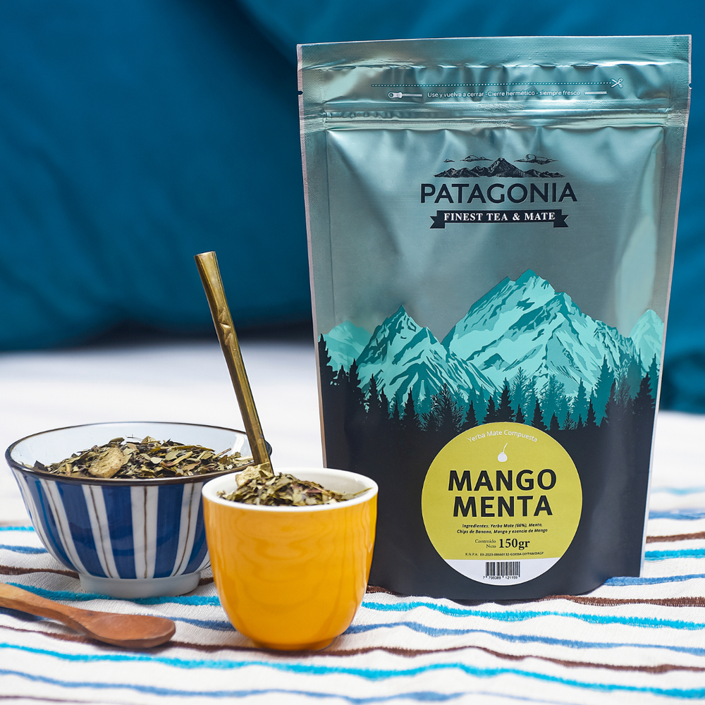 Yerba Mate, menta, chips de banana & mango.