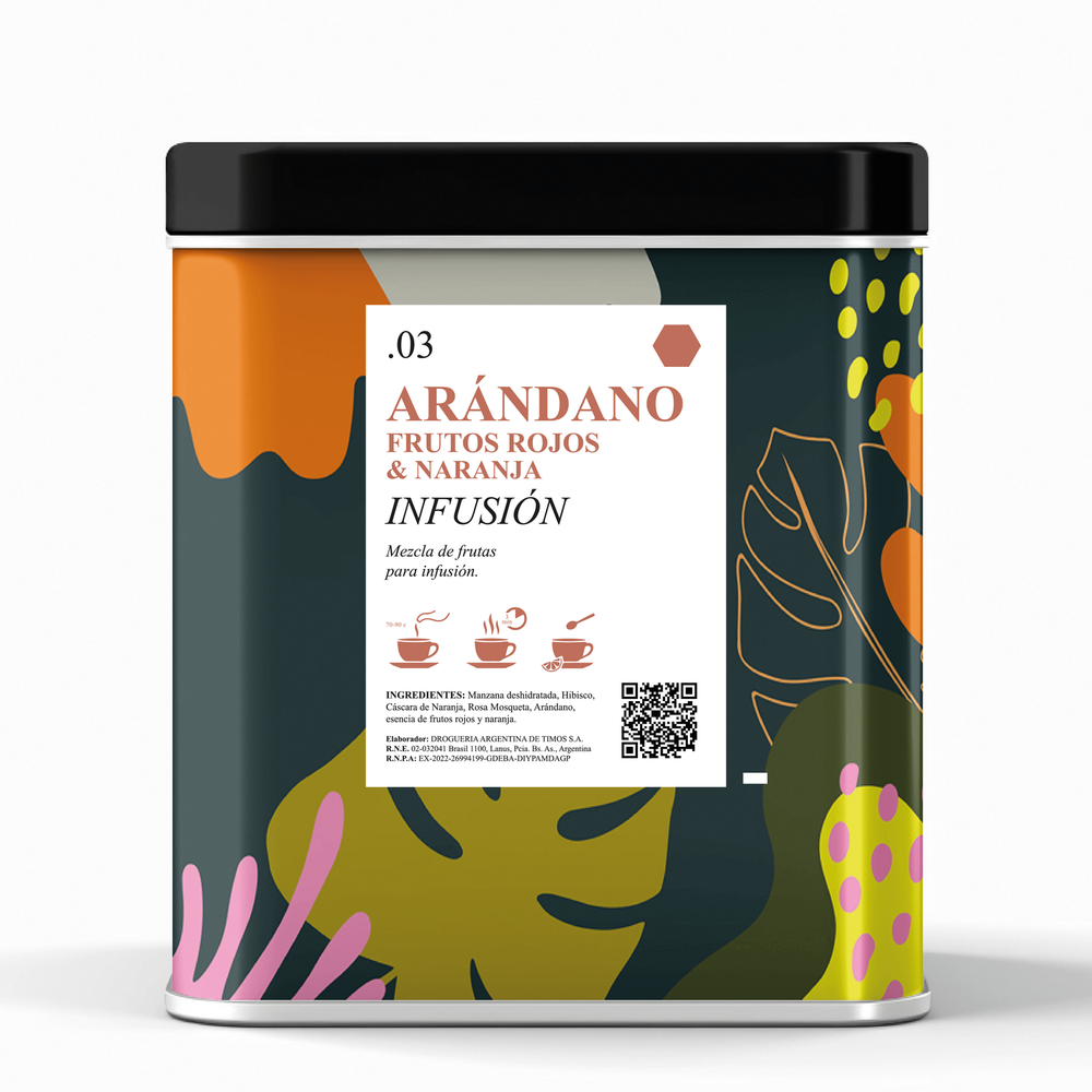Infusión libre de teína que combina arándano y frutos rojos patagonicos con cáscara de naranja. Las flores de hibisco le aportan acidez al blend. Ideal para tomar en cualquier momento del día.