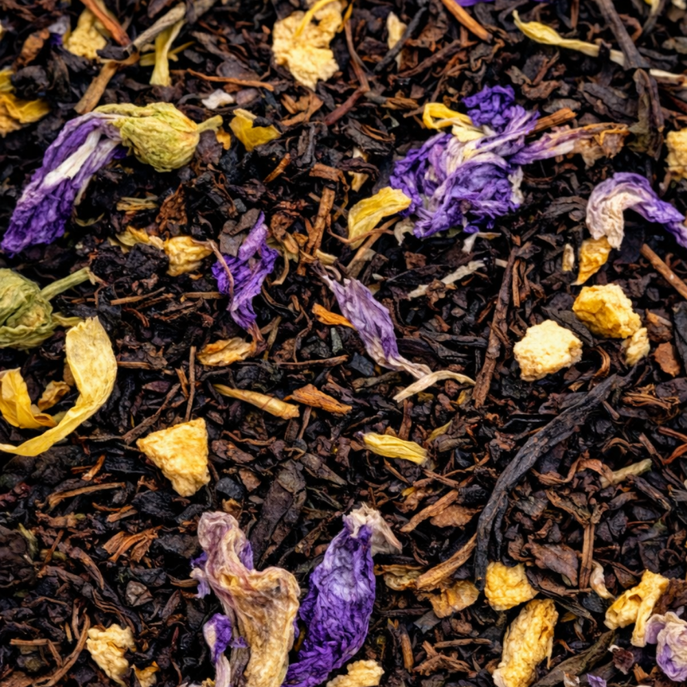 TE NEGRO CEYLON, NARANJA, PETALOS DE CALENDULA, MALVA AZUL Y VAINILLA
