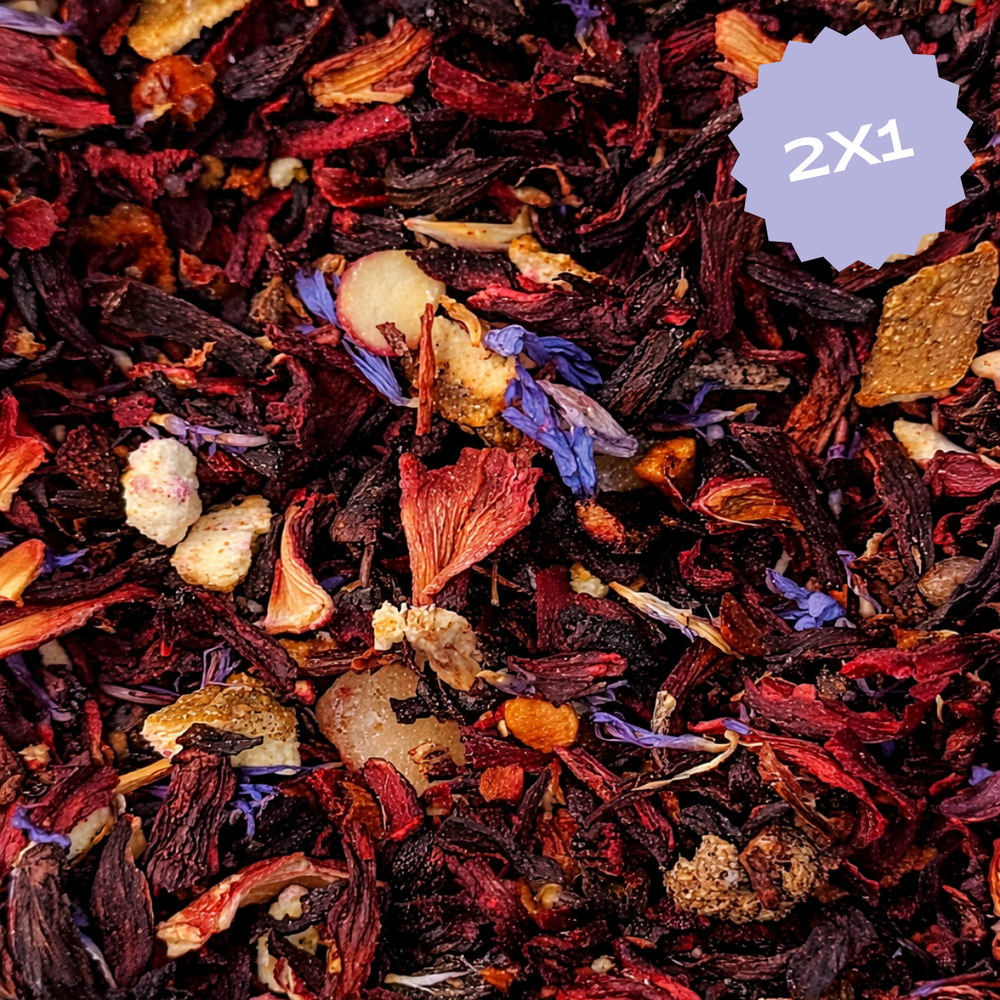 Mix de hibisco, rosa mosqueta, frutos del bosque, miel y pétalos de aciano.