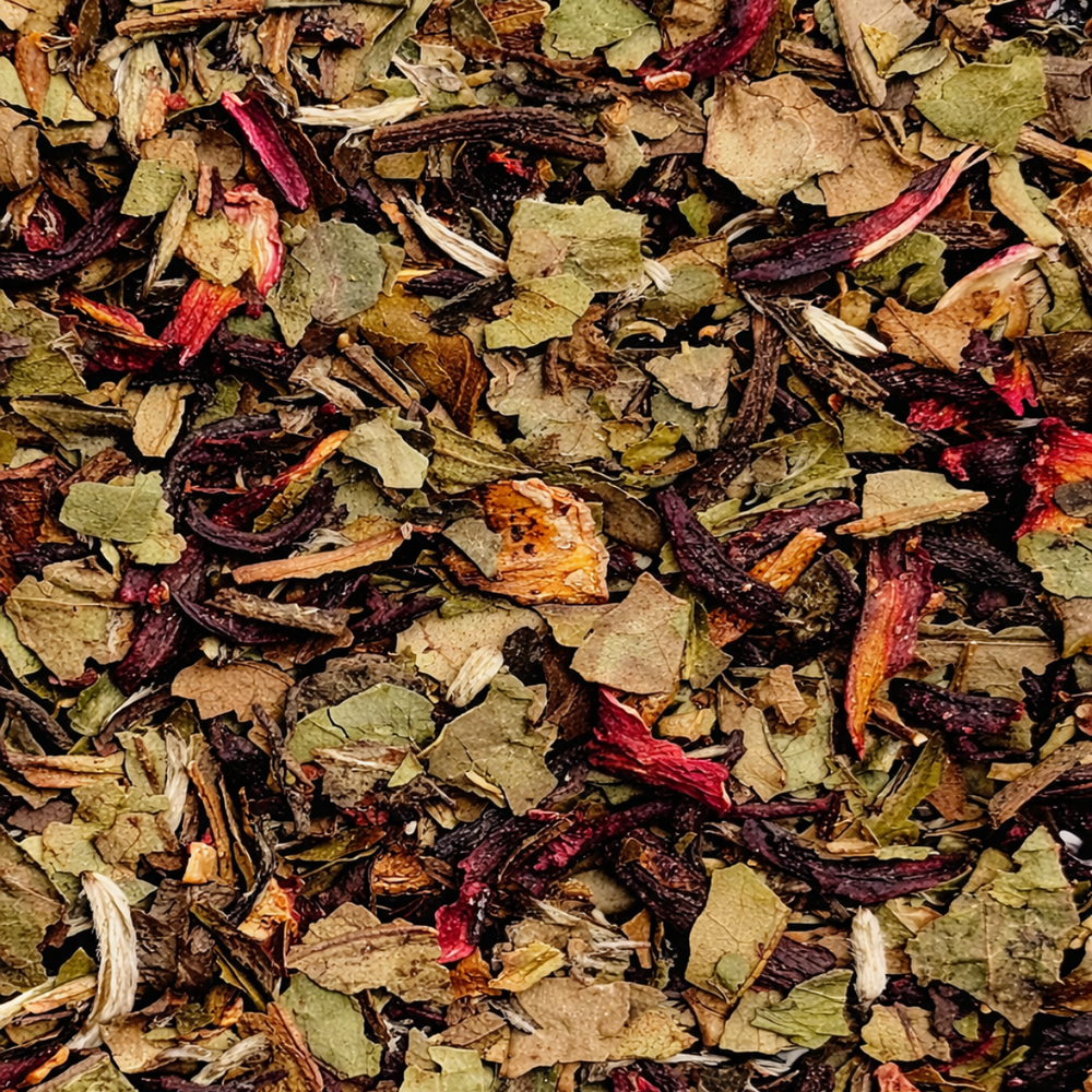 Un blend delicado y vibrante que combina la suavidad del té blanco con las notas florales del hibisco y el toque fresco y ligeramente ácido del arándano rojo.