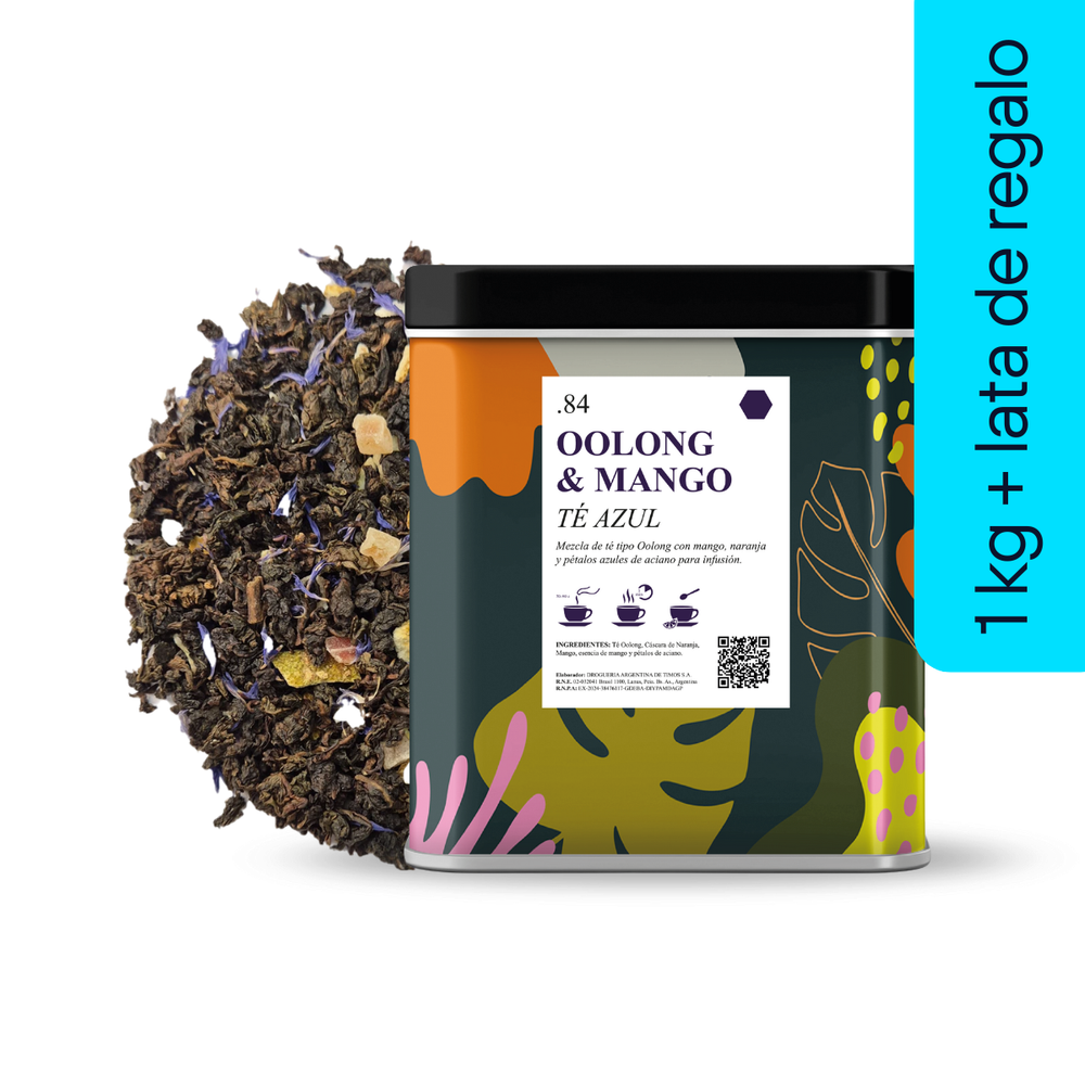 Té azul oolong, mango, cáscara de naranja y pétalos de aciano.