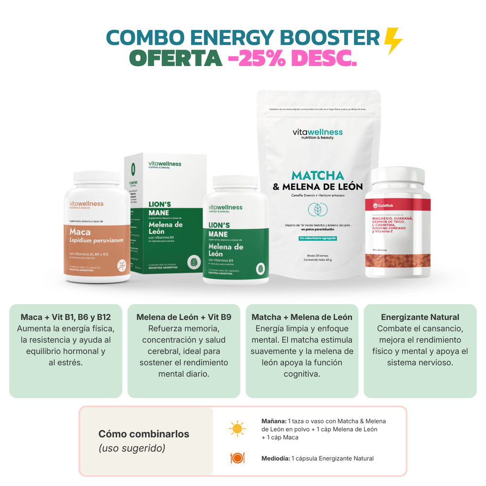 Este combo apunta directo a energía sostenida + foco mental + adaptación al estrés, ideal para vender todo el año.