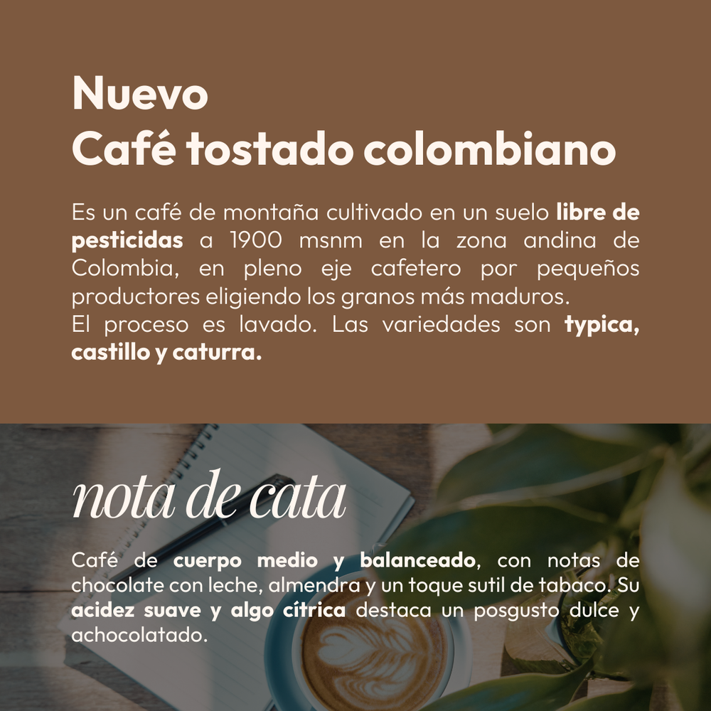 Proveniente de suelos fértiles y libres de pesticidas, cada grano conserva la pureza del cultivo y la expresión genuina del café colombiano de altura.