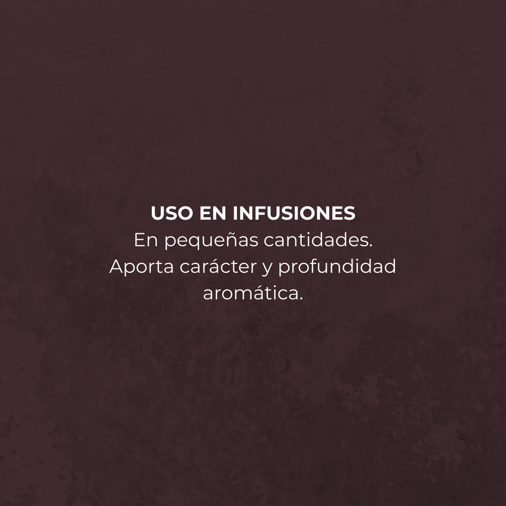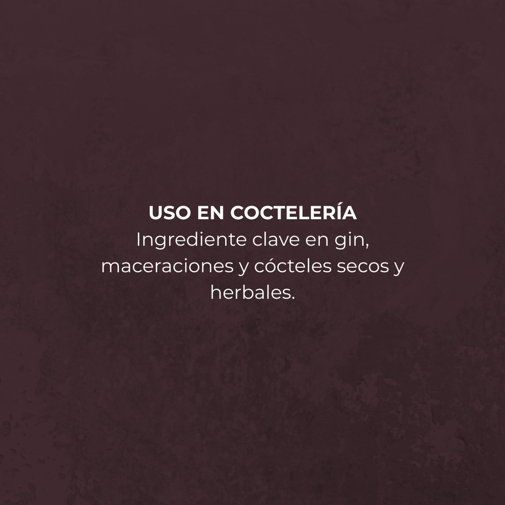 En blend, aportan estructura aromática y un toque seco y sofisticado que equilibra mezclas dulces o frutales. Son ideales para dar profundidad y un matiz botánico distintivo.