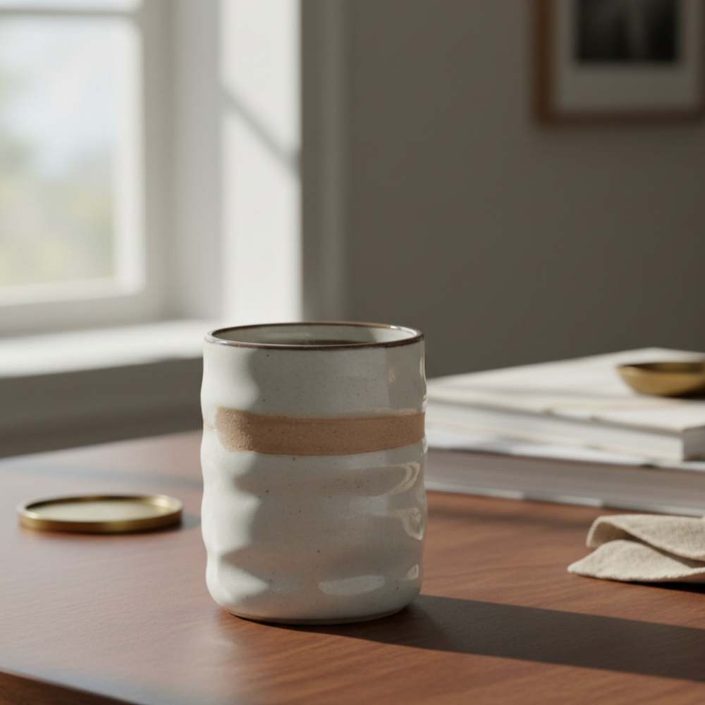 Ideal para servir té, matcha, infusiones funcionales o incluso café, su formato cómodo y envolvente invita a sostenerlo con ambas manos y disfrutar la temperatura, el aroma y la experiencia completa.