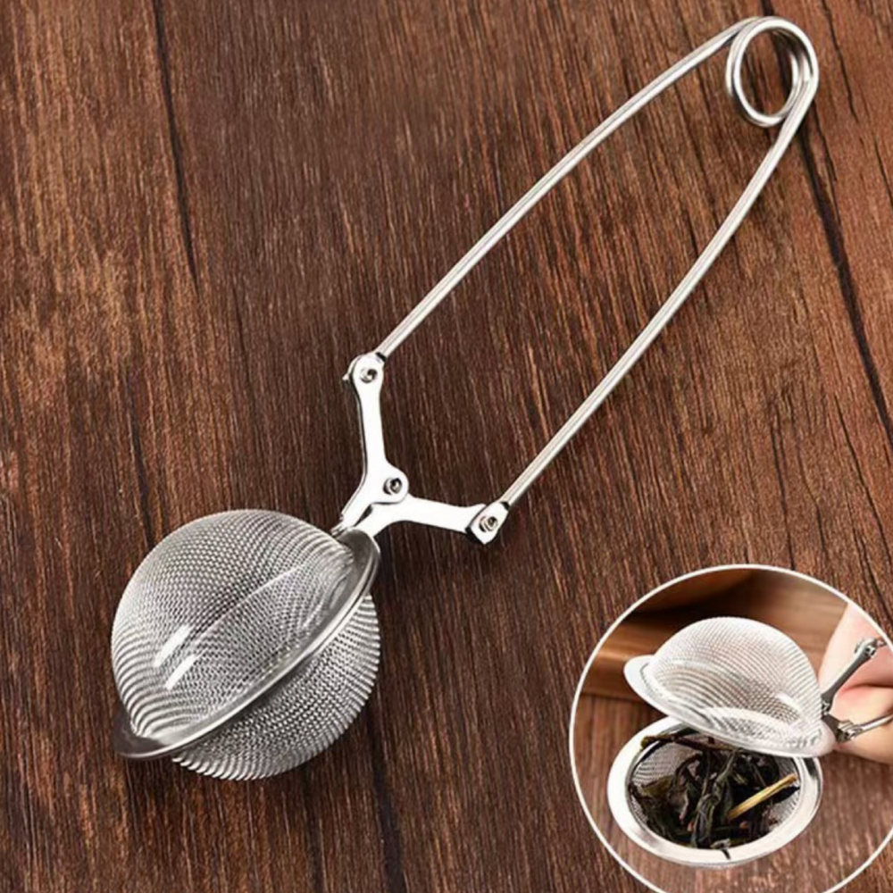 Nuestro infusor tipo cuchara bola de acero inoxidable está diseñado para preparar infusiones de forma práctica, limpia y eficiente. Su sistema de cierre con pinza permite abrir y cargar fácilmente tus hierbas, especias o mezclas favoritas, garantizando una infusión uniforme y sin residuos en la taza.